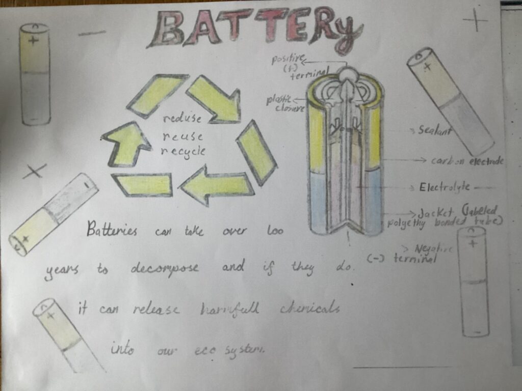 Karam created a poster with important information regarding disposal of batteries, including a fun diagram of what's inside one!