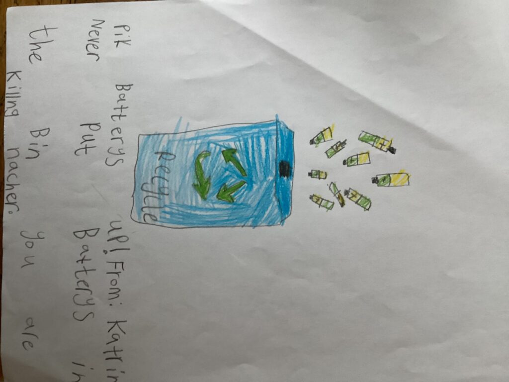 Katrina made a poster warning people about the dangers of putting batteries in the bin instead of recycling them properly.